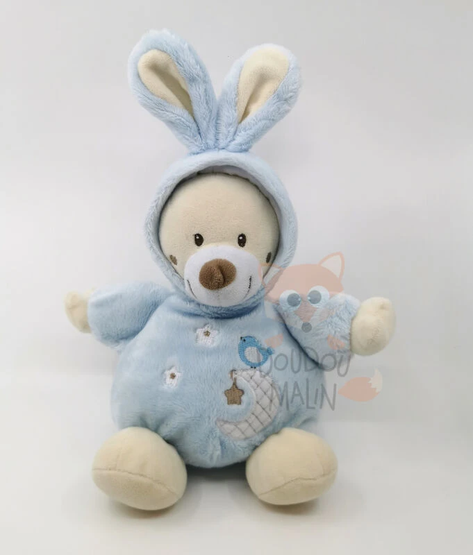 Peluche ours déguisé en lapin trop mimi de 25 cm. Capuche amovible.
