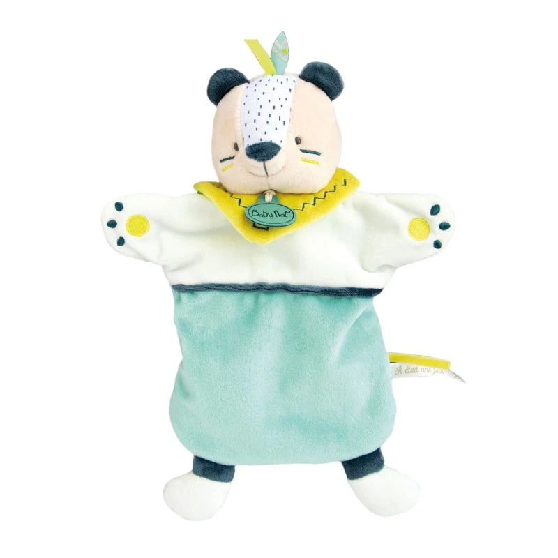 Cette marionnette ours vert de la marque BABY’NAT sera le compagnon idéal de bébé. La marionnette ours est le doudou idéal pour avoir de tendres moments de complicité avec bébé.