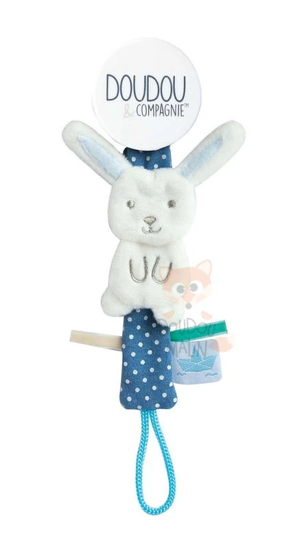 Cet attache-sucette lapin bleu de la marque DOUDOU ET COMPAGNIE est un accessoire indispensable pour ne plus jamais perdre sa sucette. L’attache-sucette lapin est lavable en machine à 30 °.