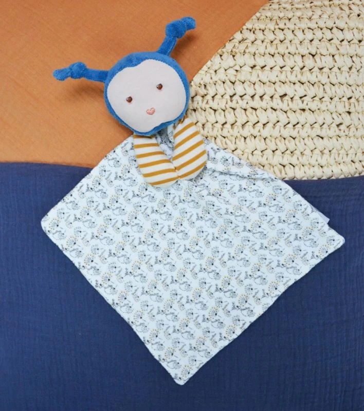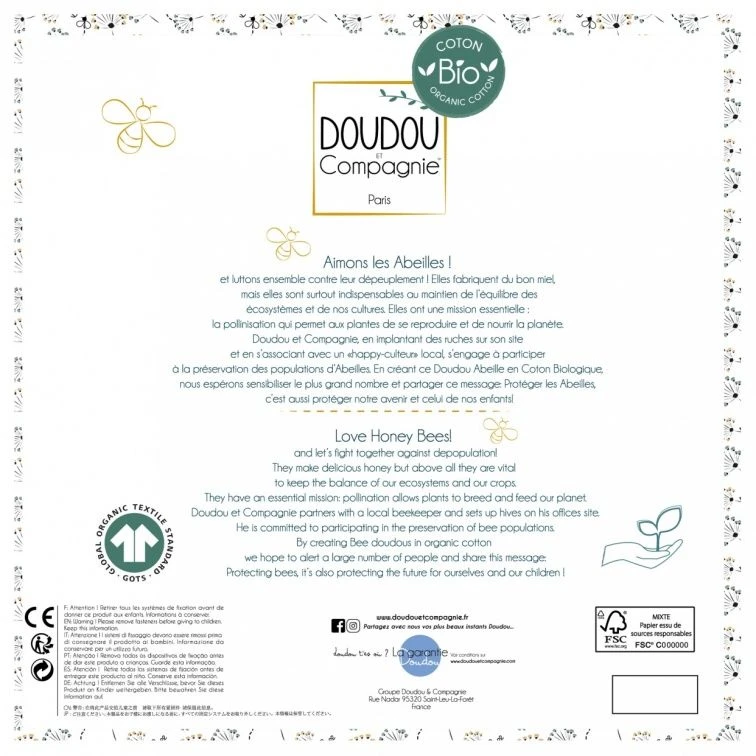 Caractéristiques :Abeille / Doudou plat / Mixte / Blanc / Coton BIO