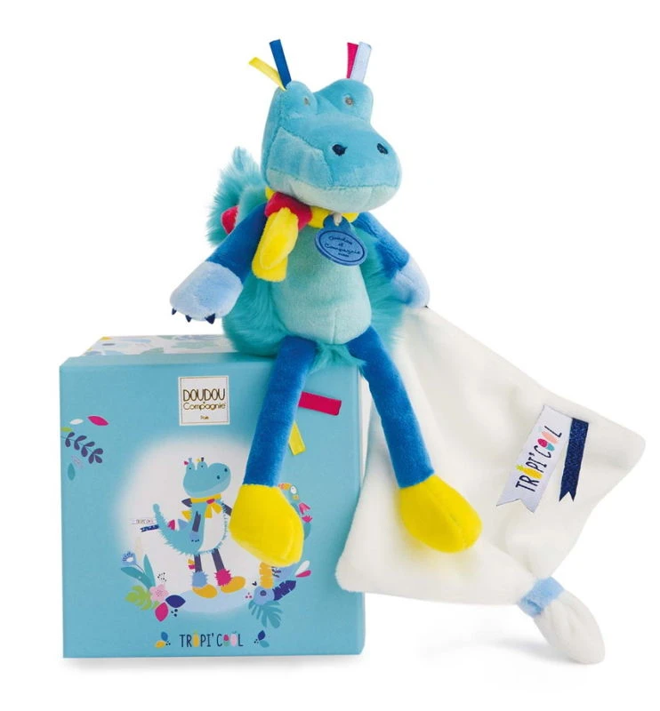 Cette jolie peluche crocodile vert de la marque DOUDOU ET COMPAGNIE sera le compagnon idéal de bébé pour de tendres câlins. Une jolie peluche DOUDOU ET COMPAGNIE toute douce à offrir sans modération.