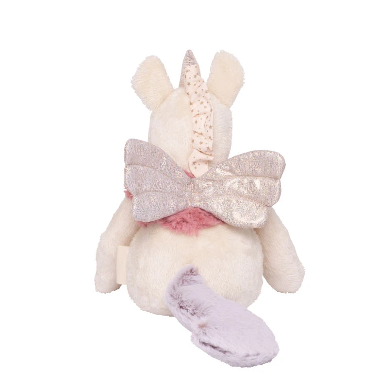 Superbe peluche Licorne toute douce avec un hochet à l’intérieur et de jolies ailes qui crissent sous les doigts pour de tendres câlins !