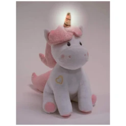 Sa corne s’illumine et le son d’ une pluie d’étoiles retenti grâce à son bouton poussoir. Un cadeau idéal qui plaira à coup sûr !