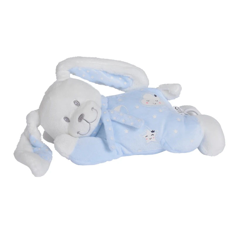 Ce doudou luminescent lapin bleu de la marque NICOTOY sera le compagnon idéal de bébé pour passer des nuits paisibles. Ce doudou luminescent se retrouvera très facilement dans le noir par bébé.